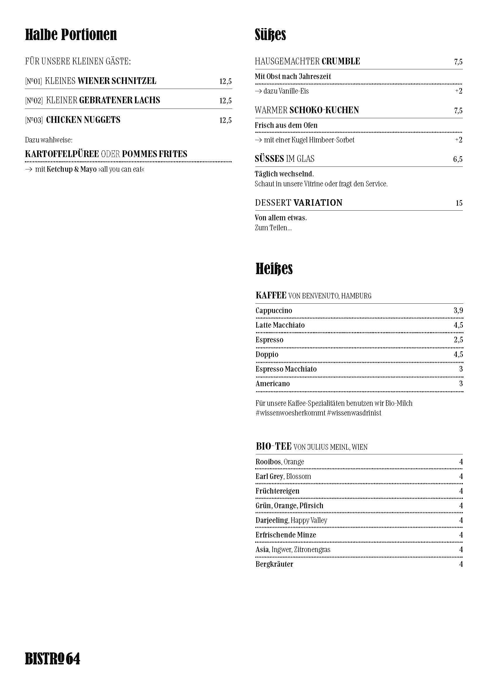 Unsere Küche am Grindelhof findet Ihr ab sofort unter dem Namen »BISTRO 64«.