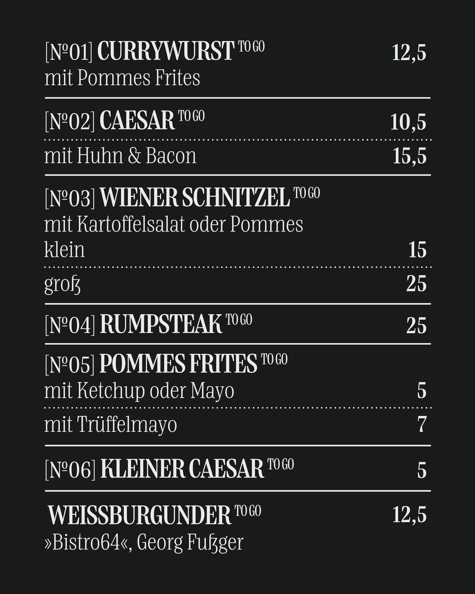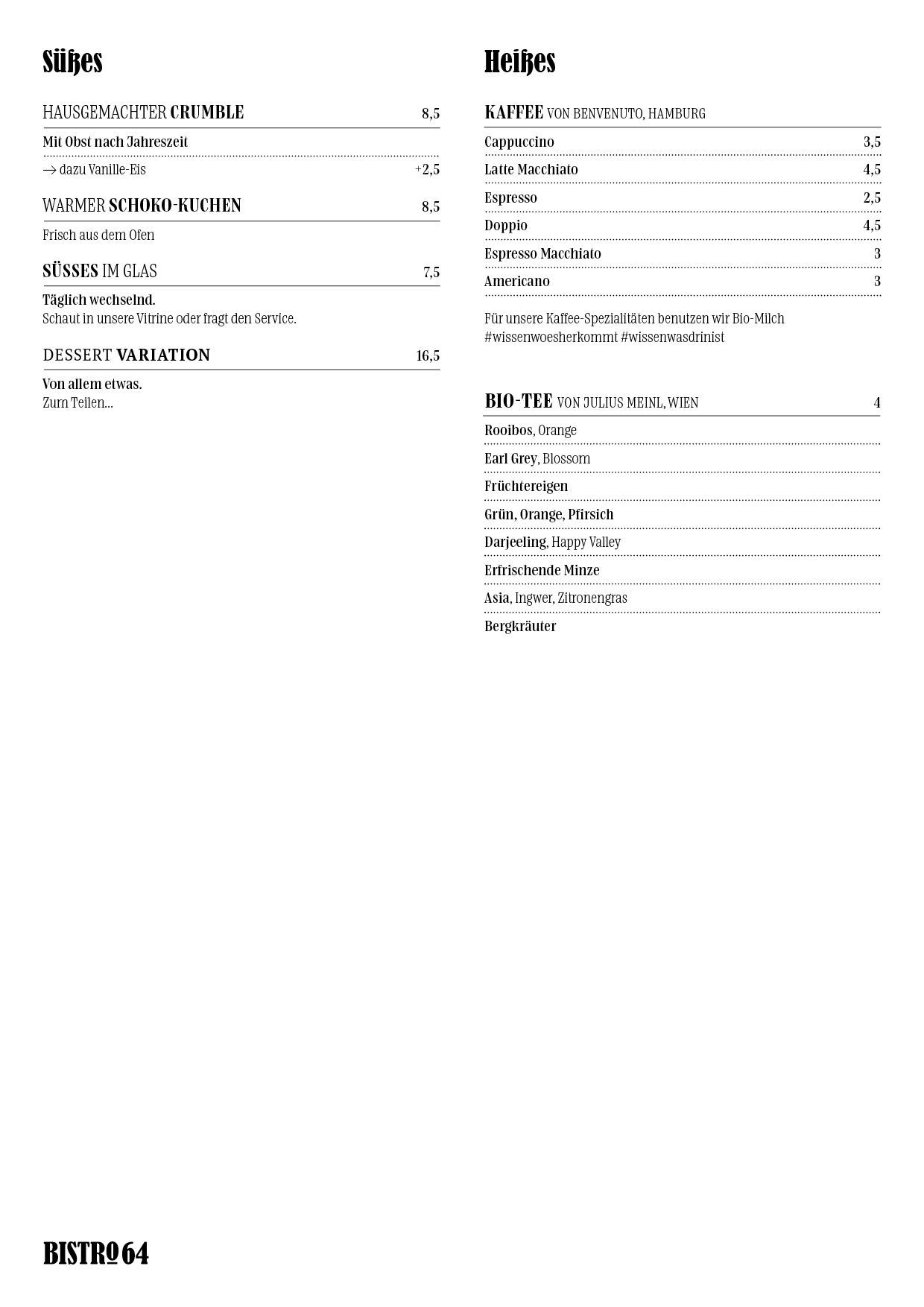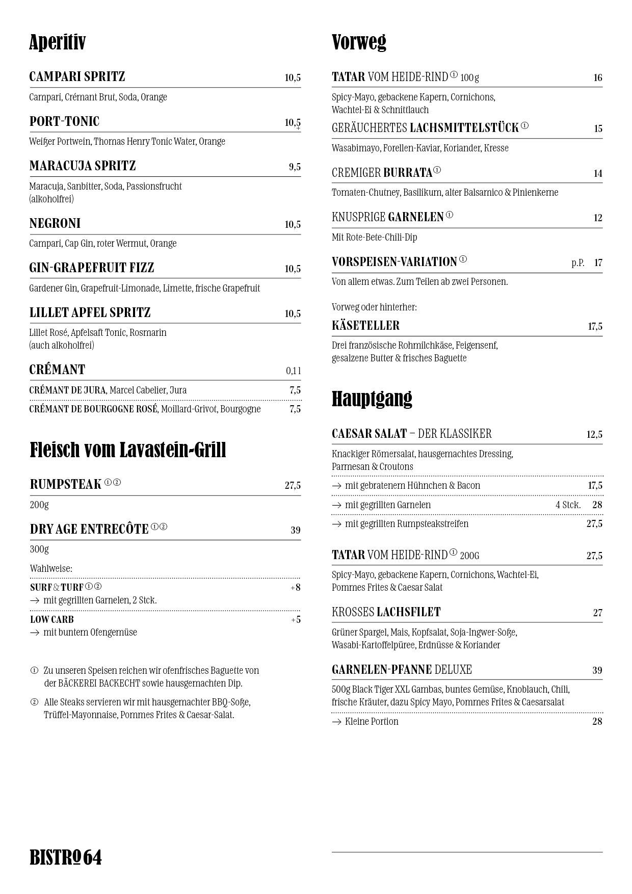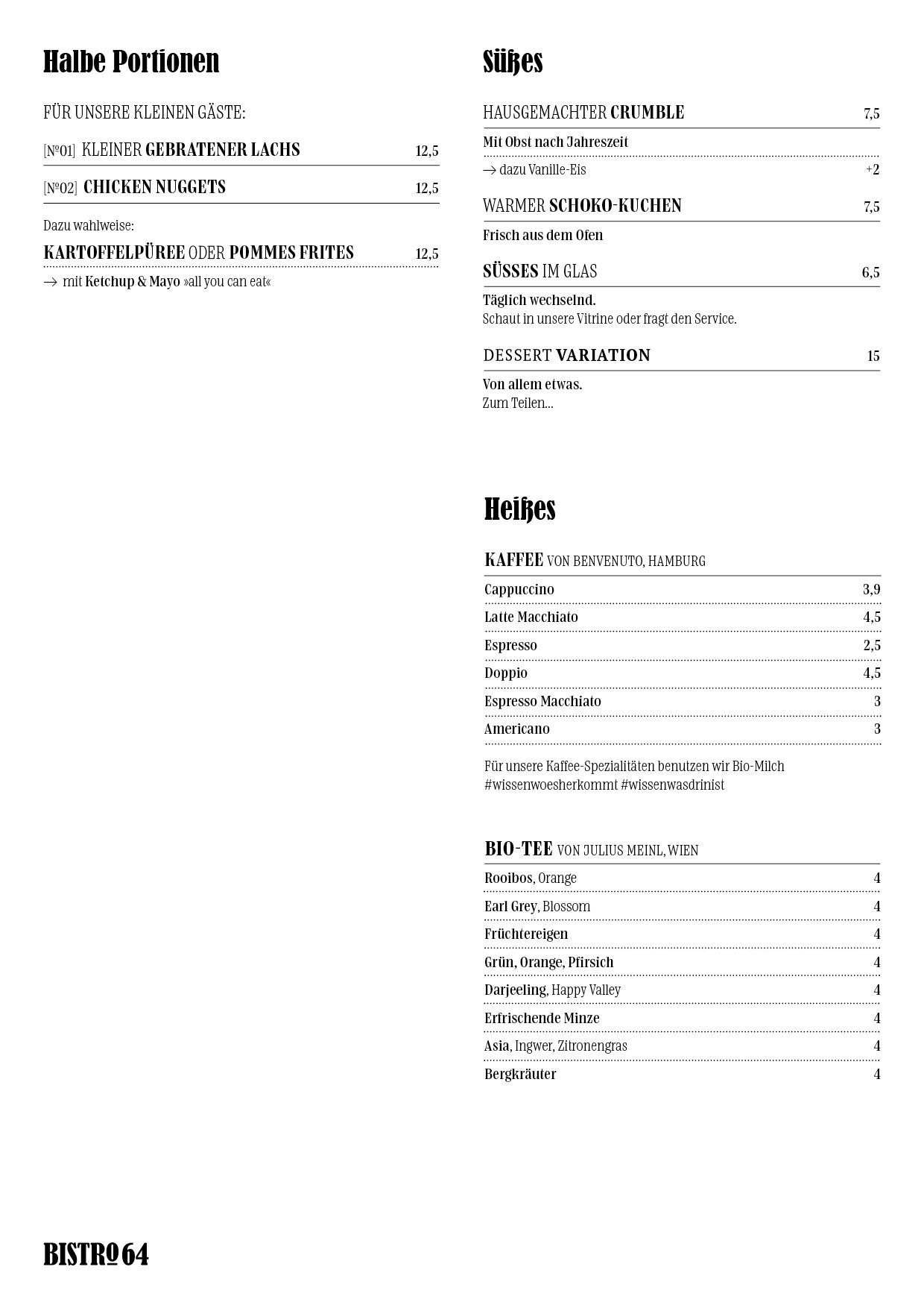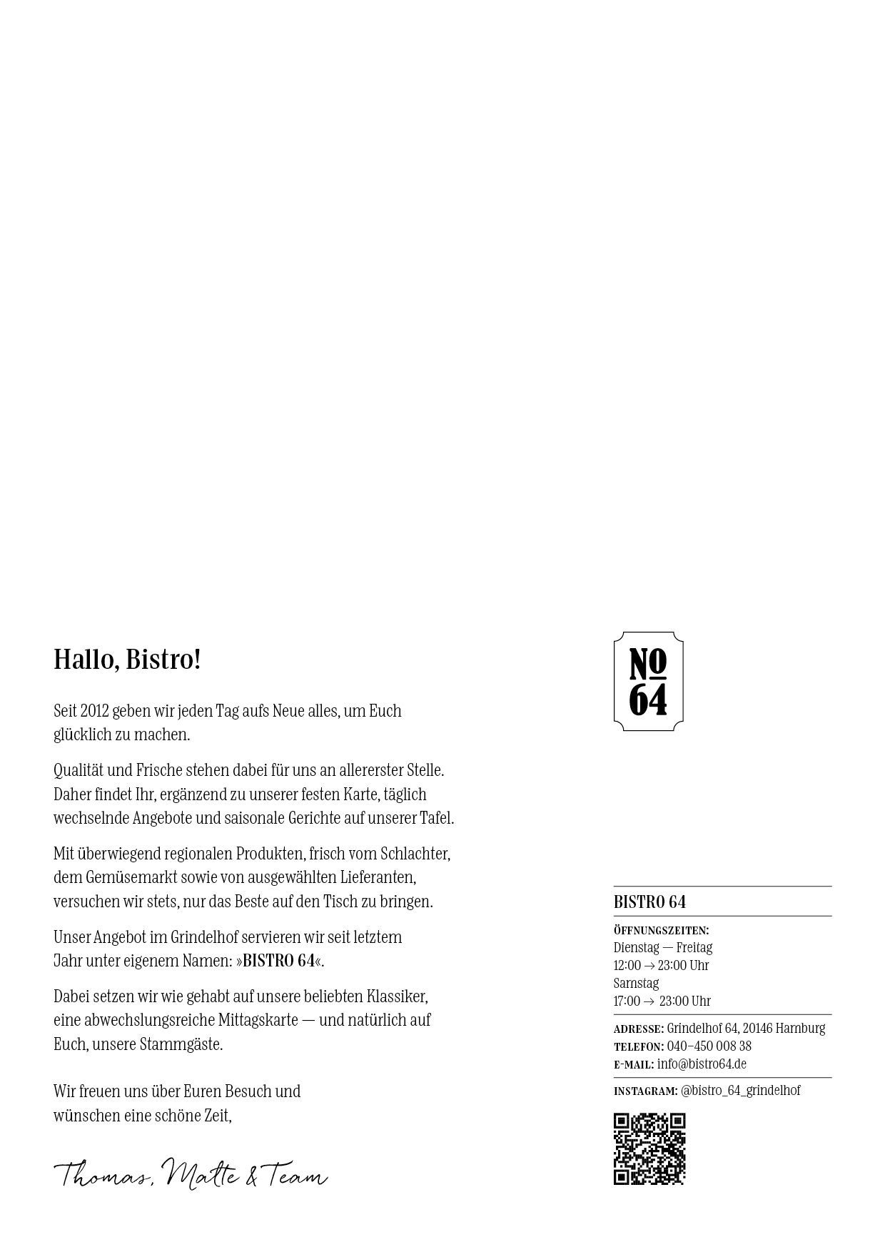 Unsere Küche am Grindelhof findet Ihr ab sofort unter dem Namen »BISTRO 64«.